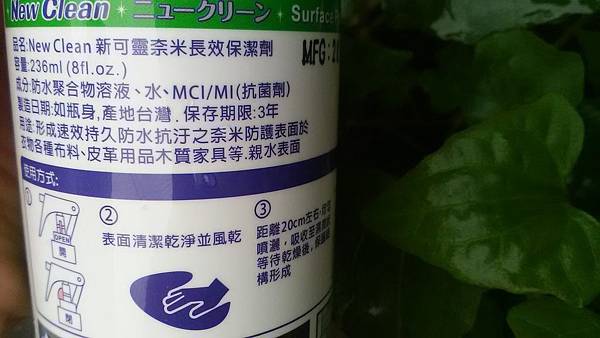 「新可靈」奈米長效保潔劑的商品成份,內容物包括防水聚合物、水和抗菌劑,安全性通過歐盟最高標準(169 項有害物質檢測)、不含治癌物與致突變性第 1、2 級的物質,同時擁有 SGS & Intertek 雙認證。這樣很好,安全是再基本不過的底線。