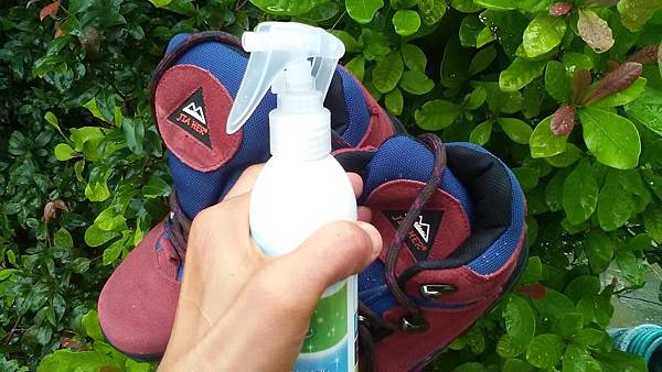 伴隨遠征出門勞苦功高的登山鞋自然也需要噴一層。噴噴!媽媽問明發現我要幫鞋子噴防水防污保潔劑,很大方地說「這幾雙鞋通通拿去噴一噴」。一共是五雙鞋子。真是賺到了,哈哈哈!噴噴!