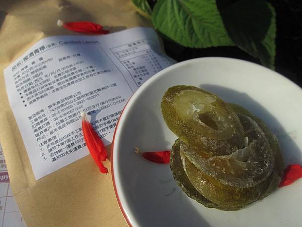 剛咬下蜜漬青檸覺得好硬,但發揮耐心稍等一下青檸在口中吸收水份熱度就好嚼了,整個青檸包括皮都能好好嚼碎吞下肚沒有問題。這蜜漬青檸漬得不錯不會太甜,我很怕太甜的漬物。這個我可以接受。
