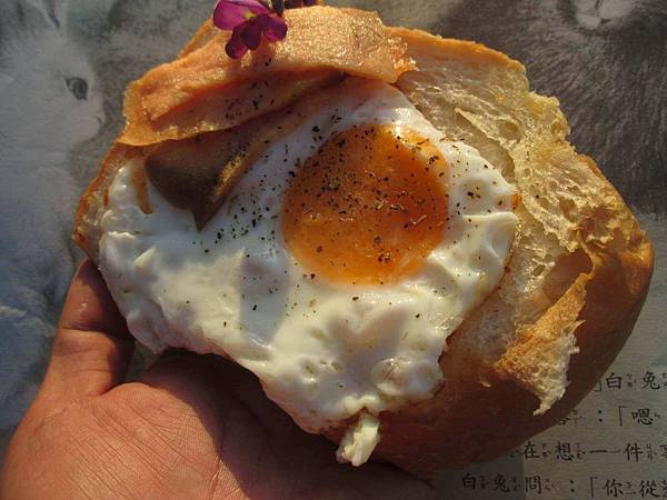 或者吃鹹的。我在「生吐司」加上煙燻鮭魚、荷包蛋後灑上現磨的胡椒粉,連著土司邊做成了風格粗獷的