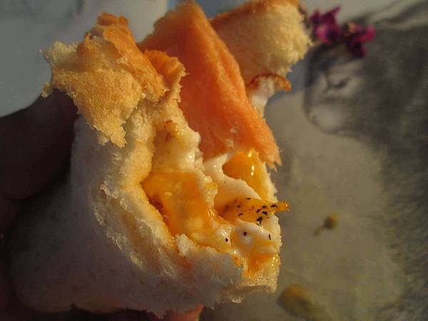 半熟的荷包蛋汁統合了「生吐司」和煙燻鮭魚的風味、現磨黑胡椒更加提味,一整個好吃極了!