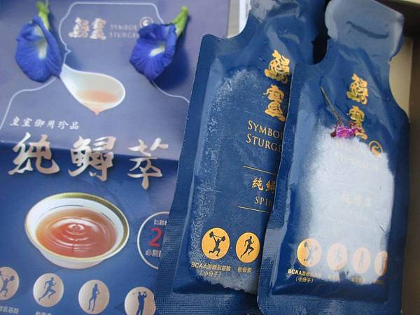 商家以獨創萃煉工藝製作高濃度的精純營養液,以藍色無毒內袋盛裝、再以鎮重的精緻同色禮盒包裝,更顯得「純鱘萃」格外珍貴。