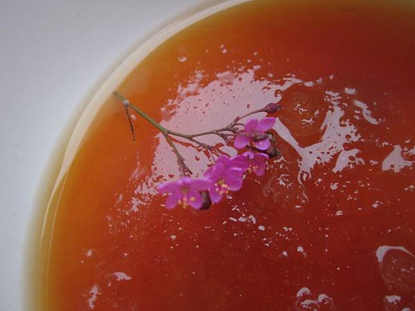 以電鍋加熱五分鐘後的「純鱘萃」仍舊保持橘紅色澤,味道不腥不羶、風味倒是有股「番茄汁」的味道,風味溫補。