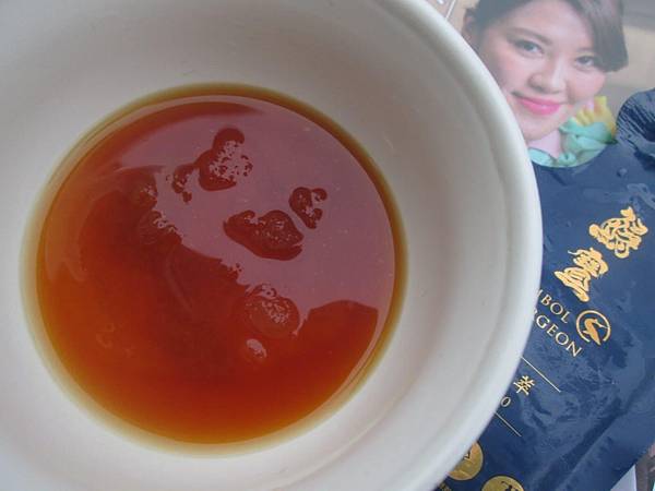 基本上「純鱘萃」是建議以常溫保存就可以,剪開密封包裝倒出的萃取液呈現醇厚的橘紅色澤,我沒想到會是這樣顏色?猜想多半與加入的枸杞、 紅棗成份相關。