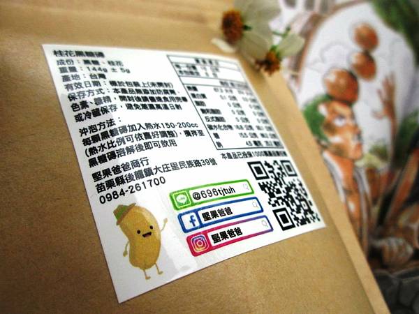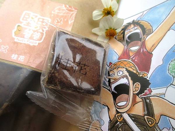 「堅果爸爸」的「黑糖」系列原本有原味、老薑、桂圓紅棗與桂花四種風味,我選擇了當中最顯得特別的「桂花黑糖磚」。