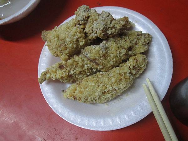 「土魠魚盤」上頭在送上桌時灑了胡椒鹽增添鹹香的滋味,沾點店家的醬油膏也好吃。