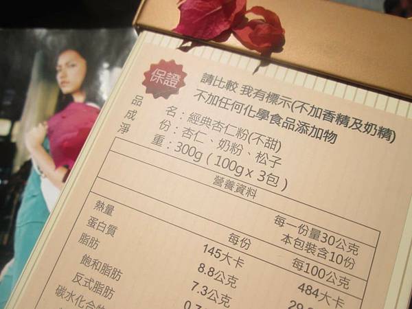 成份:杏仁、脫脂奶粉、松子
