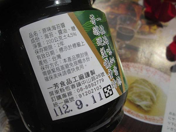 他們家的原味海苔醬成分非常單純,裡頭成份只含海苔、醬油與糖,不添加防腐劑與甘味劑等人工添加物。