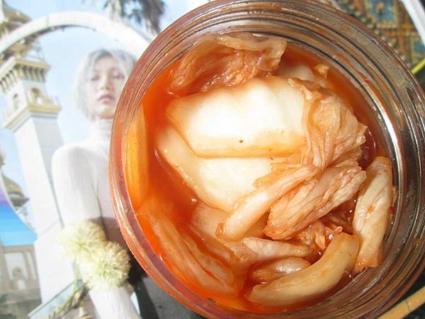 「韓式泡菜」一開罐就瀰漫辛香料不會錯的馥郁香氣,尤其是大蒜的香味令人嘴巴裡就開始分泌口水。