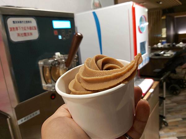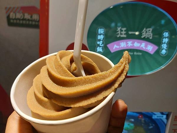 霜淇淋機是老式拉把的設計外型、做出的霜淇淋乍看像是巧克力口味,其實吃起來是「黑糖」的滋味喔。我第一次吃到黑糖口味的霜淇淋,甜甜冰冰的做為這頓火鍋餐的結尾挺好。