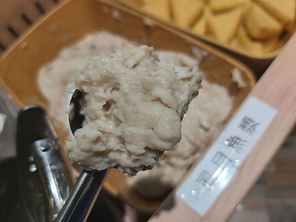 所有火鍋料當中最吸引我注意的當屬「虱目魚漿」、自取後放入火鍋高湯裡滾一下就可以吃了。現煮現吃很不錯。
