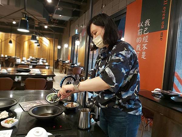 接著是店員小姐為我們送上火鍋湯底並且現炒開鍋的時刻。