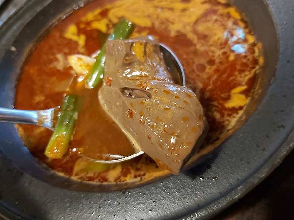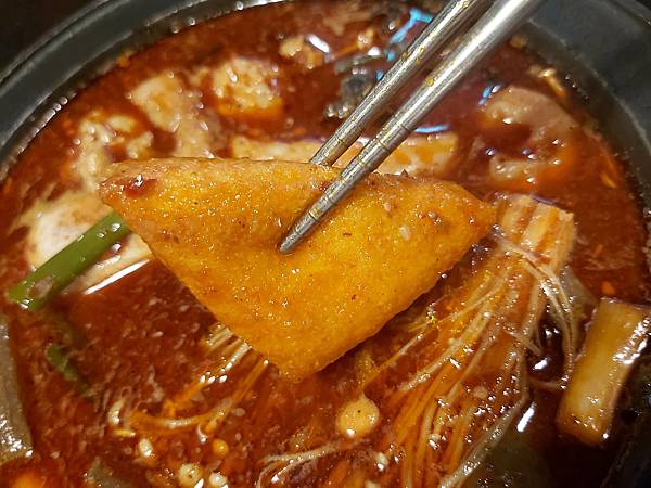 不過儘然同事自詡愛吃辣、但仍覺得這「火焰香辣鍋」的辣度還是太辣了點,所以是續入了滿多的高湯調成剛剛好辣的鍋底。這辣度我也愛。