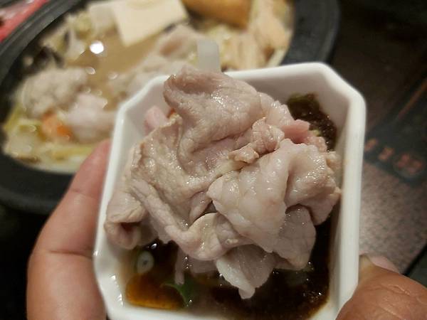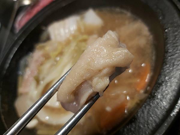 「活力梅花豬」在瘦肉中帶有油花、一經火鍋湯底煮熟後就成為鮮美風味的來源,這火鍋肉片論口感與滋味都很美味。
