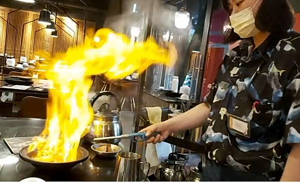 尤其是在準備「火焰香辣鍋」鍋底時、店員小姐點火燒掉酒精時火苗猛竄到半空中,實在很有看頭。想要炒熱氣氛的話點這道就對了。