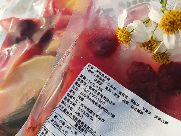 將鮮凍包稍退凍後就可以看到裡頭貨真價實的鮮豔有機蔬果保持著原形食物狀態,加入適當水量再用調理機或果汁機打成汁狀就可以飲用。