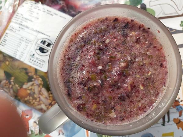 就這樣「V.G BOOM」莓果綠拿鐵鮮凍包成為我在最近禮拜六、日的養生飲食,從冰箱取出後用果汁機現打現喝,一次補充「蔬菜、水果、堅果、植物性蛋白」到位。喝完感覺身體格外清爽有活力挺不,我想等喝夠多再來研究怎麼自己搭配食材配方。讚讚。