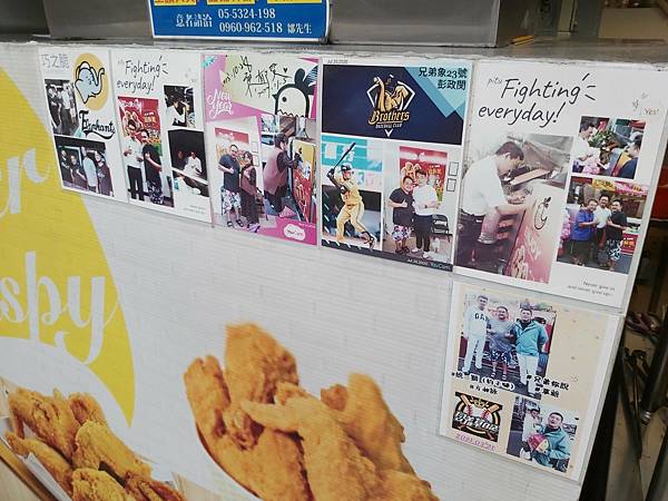 炸雞攤上有好些知名人士到店吃東西的簽名、包括已經引退的兄弟象背號 23 號「恰恰」彭政閔,我本來想留下我的簽名不過怕店員們不要就算了。噗噗。
