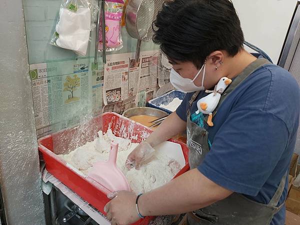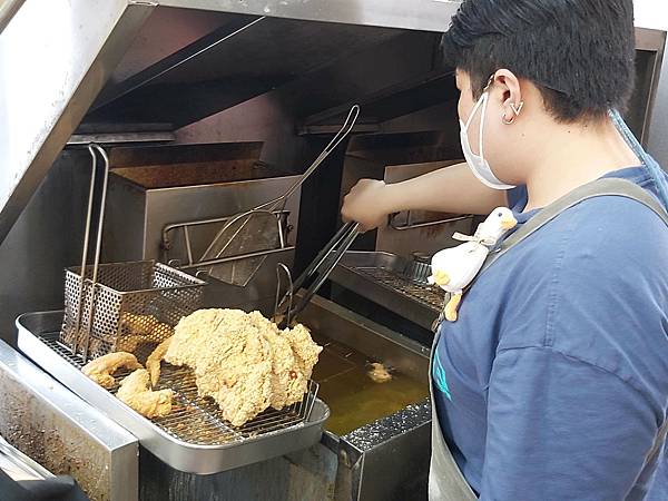 包括「炸雞」也都是從冷藏庫拿出鮮肉現場裹粉、去粉後油炸。去粉時竟然是將裹好粉的肉往牆上猛摔、真的很有特色。