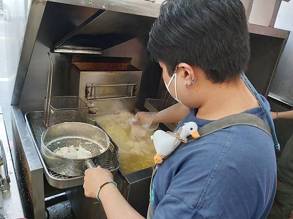 炸雞現點現炸、對油炸的時間都對時鐘掌握,工作非常有效率。