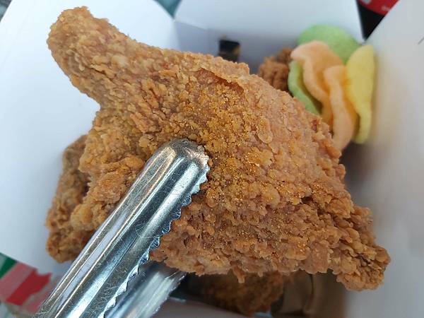 偌大一塊炸雞也是直接炸到金黃後起鍋,以店員小哥這麼年輕來說炸功把握得相當好。