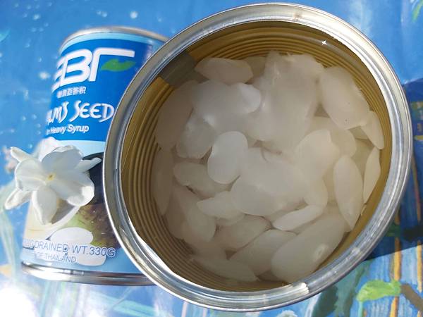 罐頭中的「亞答枳」是整顆去果皮後裝罐、果肉呈膠狀半透明,肉質飽滿外形有點像皇帝豆。