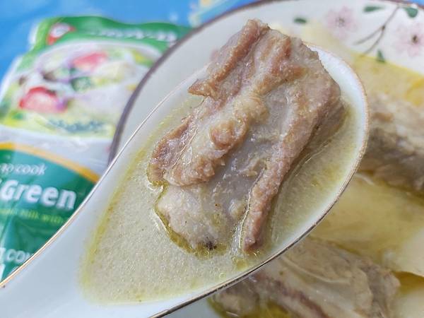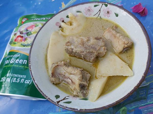 「泰式綠咖喱竹筍排骨湯」,吃得到泰國才吃有的道地綠咖哩風味。不錯。