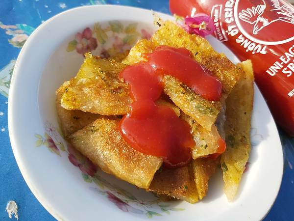 我妹很愛買蔥油餅、喜歡到每個禮拜都買,我用這「聯鷹牌是拉差辣椒醬」換味就覺得蔥油餅味道更有層次更有味了。真的是人要金裝,蔥油餅要辣椒醬妝啊!