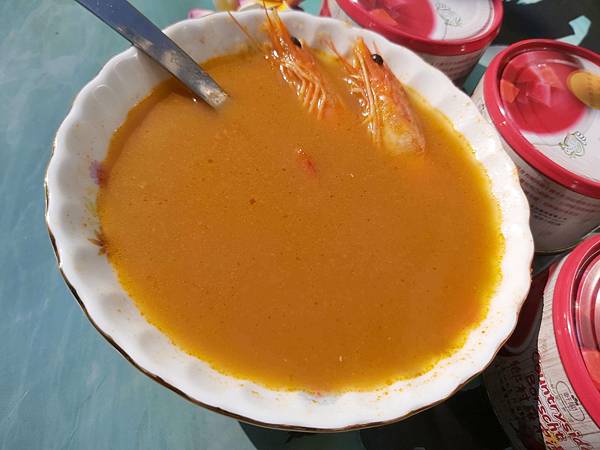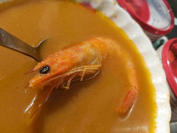 「鄉村羅宋湯」一整個燉煮成橘紅的色澤、以番茄與複合辛香料的滋味為主,很鮮香。我再加入鮮蝦煮成 🍅「鄉村羅宋鮮蝦湯」。