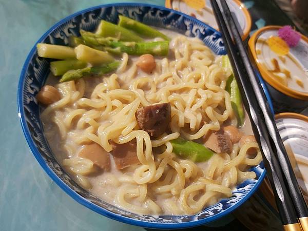 我拿「黑松露菌菇濃湯」做為湯底、加了蘆筍和拉麵煮成 🍄「黑松露菌菇濃湯蘆筍拉麵」,散發出迷人的黑松露氣味。令人食指大動。