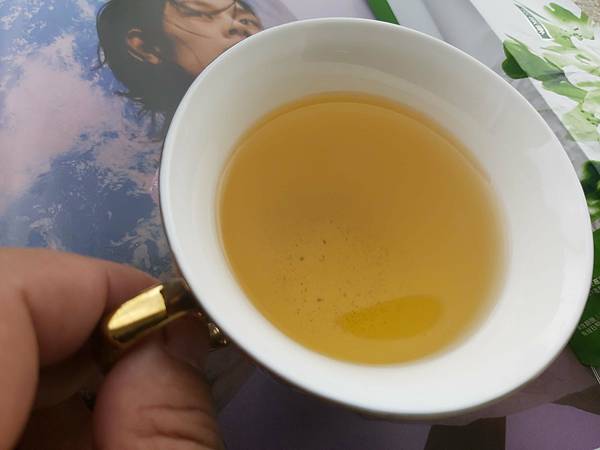 沖出來的茶湯顏色呈黃綠色、散發出溫潤的茶香味,茶味淡雅柔潤,我喜歡這淡雅滋味、如沐春風。
