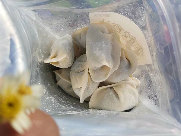 水餃一顆顆都很飽滿,成分只有麵粉、玉米粒、薑、蔥、豬肉不含防腐劑,所以還沒有要吃的時候要冷凍保存。