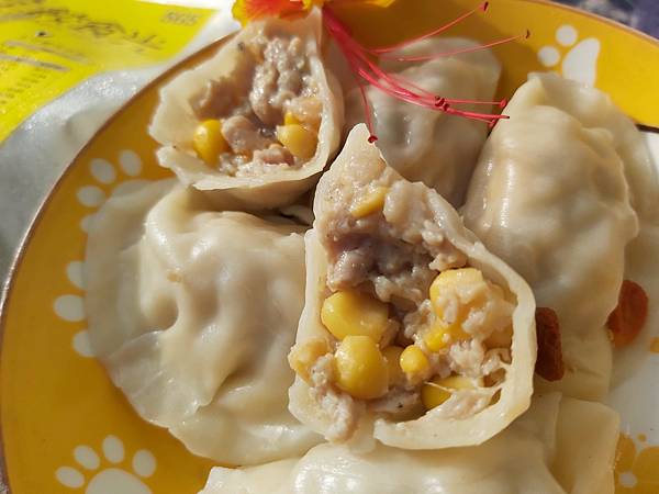 餡料所使用的玉米粒每顆都很飽滿、顯然用了很不錯的甜玉米,滋味鮮蜜的玉米粒和豬絞肉的比例也是剛好。滋味鮮甜又富有口感變化。