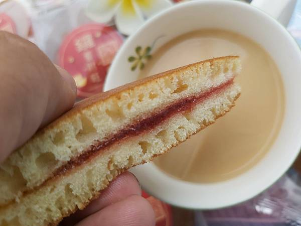 餅皮質地濕潤、草莓餡質感綿密,整體搭配的比例不錯、一口咬下不會有太甜膩的問題。口味老少咸宜,非常好搭配飲料。