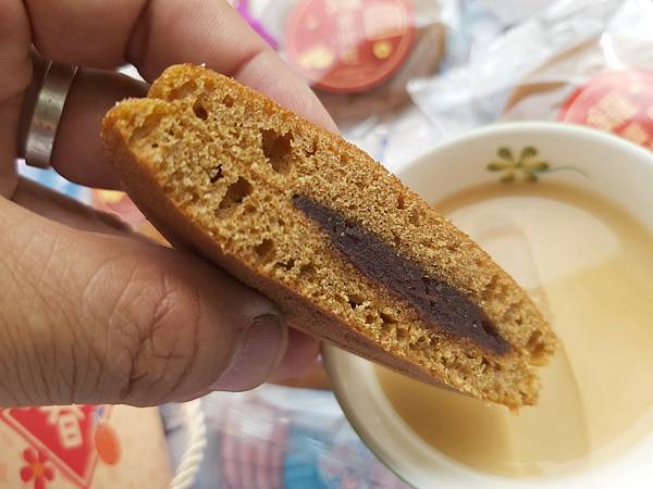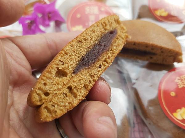 一口咬下品嚐得到黑糖的甜香、餅皮柔軟口感濕潤,裡頭的紅豆嚐起來甜而不膩。這個口味大人小孩都會喜歡。
