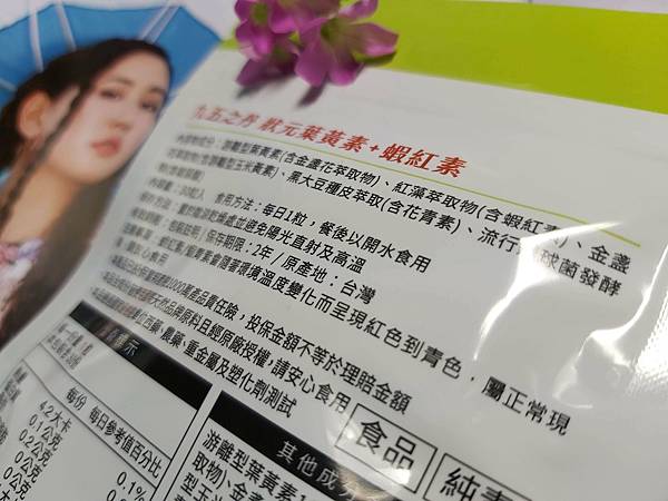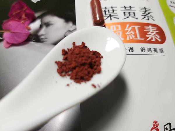 然後我發現這家的「狀元.葉黃素+蝦紅素」有時還會改變顏色,有時候我覺得是紅色、有時卻是紅褐色到青色。原本我還以為是手機取景的色差關係,想說有錢實在該敗一台唉鳳用來拍照才對!