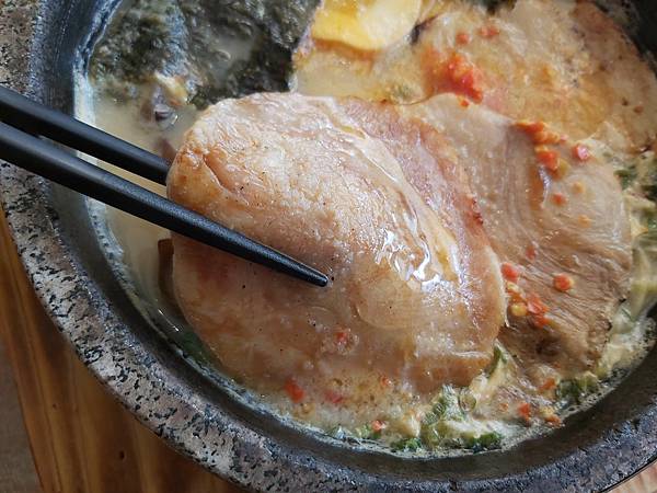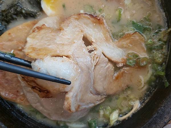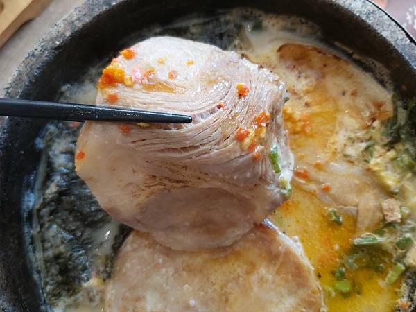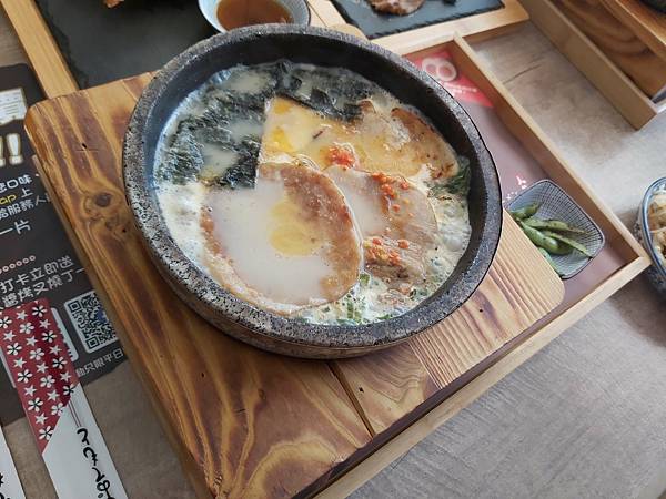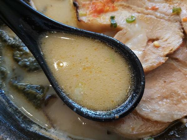 朋友的湯頭我沒有記錯的話是「味噌石燒拉麵」,湯頭濃郁富有食材鮮味、可以吃得出是嚴選食材真材實料熬出的高湯,絕不是高湯粉做得出來的滋味。