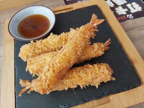 「海老炸蝦」是我追加的小菜,因為他們家的炸蝦看起來真好吃的樣子啊!一份有四條炸蝦使用了黑色石板保溫送上。