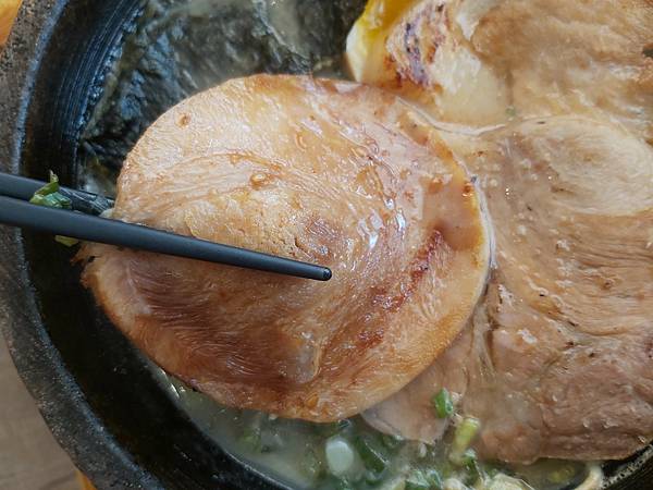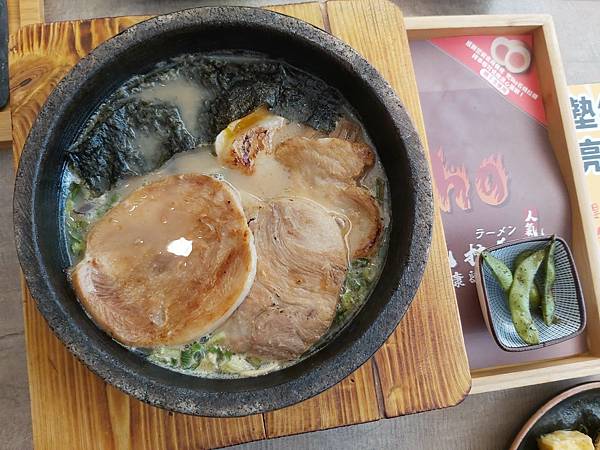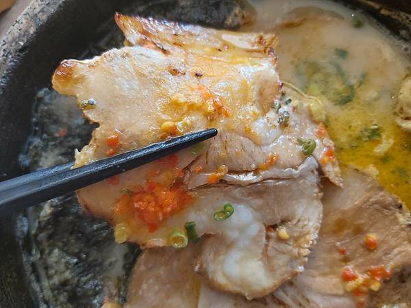 「究Sho石燒拉麵」的叉燒都是現點現炙燒,而且拉麵送上來時使用溫度高達 300 度的厚石碗盛裝、很能保溫,拉麵高溫倒入碗裡發出好聽的嘶嘶聲響。很能促進食欲顯得很好吃的樣子!