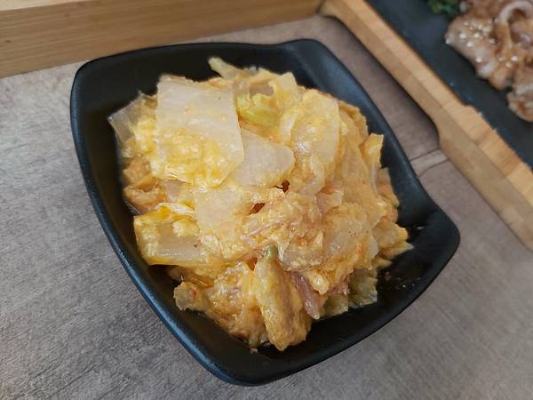 黃澄澄的「黃金泡菜」選的泡菜葉很嫩、醋味和甜味調得剛好,很適合配拉麵吃可以清口。令人一口接一口。