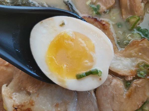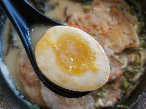 半熟的「溏心蛋」很加分、將蛋黃部份與拉麵一起吃更增鮮味。