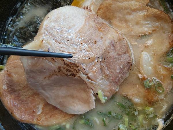 拉麵上的「舒肥雞叉燒」、「五花叉燒」、「梅花叉燒」三片叉燒也很吸引人,會讓人忍不住就想嚐嚐看是什麼滋味。