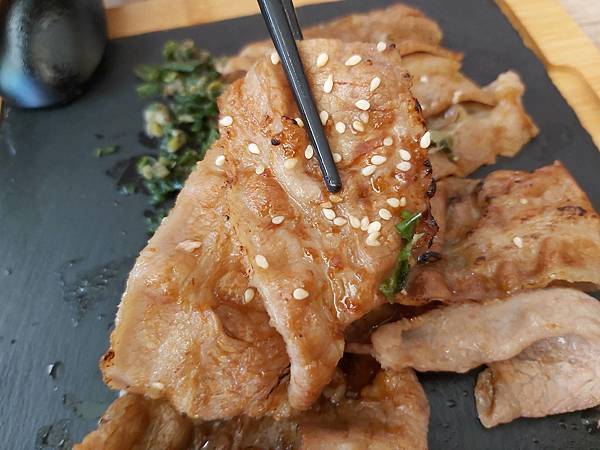 朋友說這「蔥鹽炙燒牛五花」肉質非常鮮嫰、肉味十足,配著蔥鹽吃很好吃。我也覺得這肉炙燒的火候剛好,不論在視覺和嗅覺都很能促進食欲。