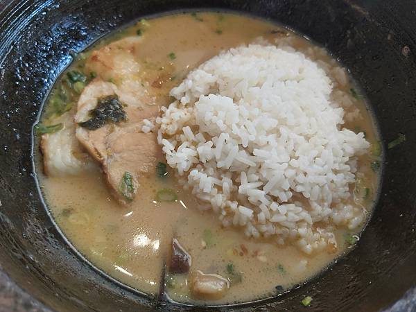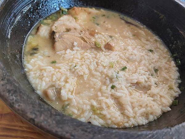 而在我吃過的拉麵店當中,「究Sho石燒拉麵」是第一間鼓勵在拉麵吃完後加白米飯倒入拉麵湯口成為拉麵湯泡飯。我當下即決定我也要這麼吃,呵呵!