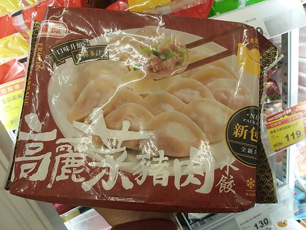 不過我這回在冷凍櫃看到的「旗山龍鳳」冷凍高麗菜豬肉水餃是大紅色的外包裝,與之前的紅、褐兩色包裝頗不相同,原來是新包裝上巿。