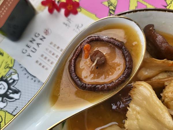 在大塊猴頭菇之外我還泡了乾香菇,並加入枸杞、人蔘鬚加色加味,煮出來就很像一回事啊。
