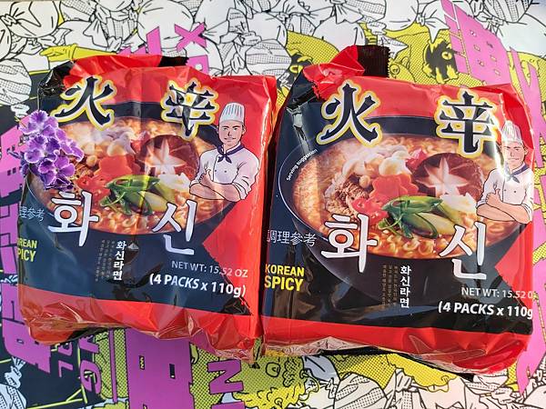 為了挑戰我妹吃辣的口味,我在家樂福入手了「K Market」的「韓式火辛拉麵袋裝泡麵」,麵體量很足煮起來很Q彈、湯頭鮮濃香辣,味道與質量都很可以。是好吃的辛辣拉麵!可是我妹不但一次用了整包調味料說不辣還喝湯。真不曉得極限在哪?嘖嘖。
