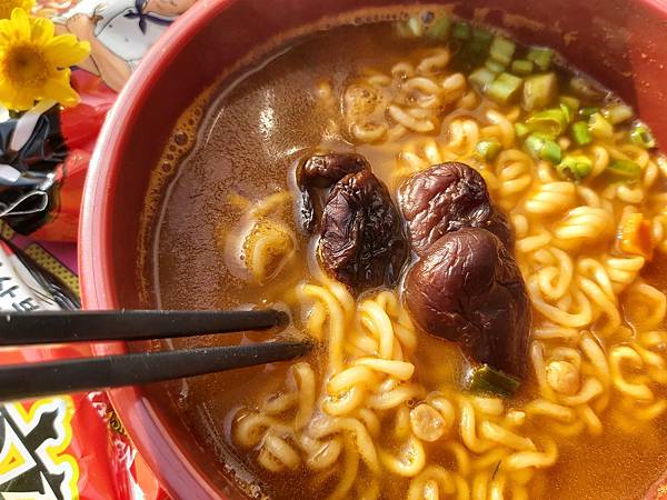 星期六一早我給自己煮「韓式火辛拉麵」當早餐、翻了一下冰箱裡頭有前一天泡的乾香菇,我就把泡好的香菇連香菇水一起煮進去。我煮泡麵向來隨性。