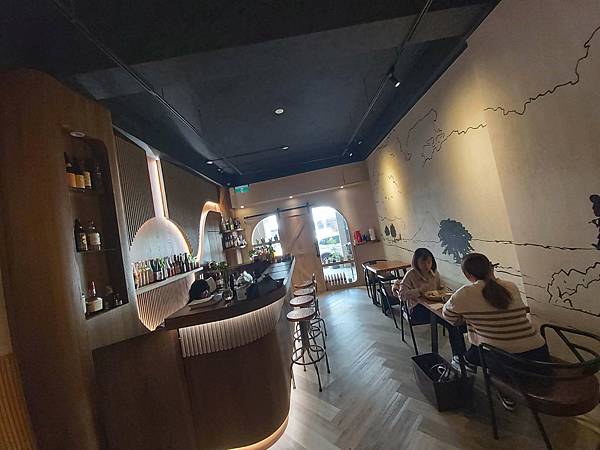 推開木門進入「艷食堂」門內有一面是吧枱與滿滿的酒類擺設、會讓人覺得看這裝潢與其說是早午餐店更像是餐酒館。