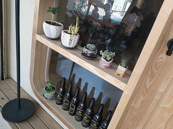 面向大門口的舷窗擺置著好幾盆多肉植物的小盒栽以及空啤酒瓶、這次就不是我喝乾的啊!從玻璃窗可以看到裡面已經有比我們早到用餐的當地客人,很接地氣可見應該不錯。